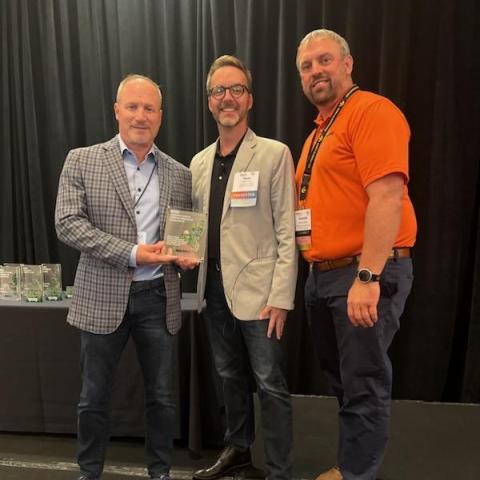 Casella Waste Systems awarded Resource Recovery with their 2022 Sustainability Leadership Award in recognition of our leaf and yard waste composting operation. A video segment from the award ceremony can be viewed on our YouTube page. Each year, Resource Recovery turns about 40,000 tons of leaf and yard waste from cities and towns, commercial landscapers and residential drop-offs into RI Class "A" compost which is approved for use in organic growing. You can visit the Get Compost page of our website for more information on the leaf and yard waste composting operation.