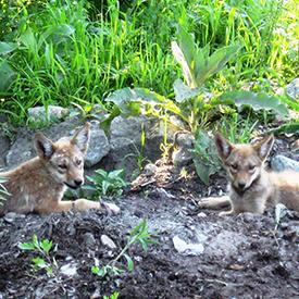 We’ve documented American Coyote, White-tailed Deer, River Otter, Groundhog, Beaver, Fox, Eastern Cottontail, Little Brown Bat, Grey Squirrel, and Eastern Chipmunk. Sometimes we see the animals themselves—like these baby coyotes that were born on our property in 2010—or animal tracks and other signs (e.g. trees cut by a beaver’s teeth) to identify mammals on our property.