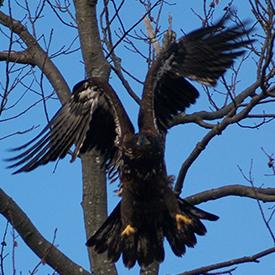 We’ve documented so many! The list includes: Bald Eagle, Short-eared Owl, Red-tailed Hawk, Red-shouldered Hawk, Cooper’s Hawk, American Kestrel, Great Blue Heron, Night Heron, Great Egret, Glossy Ibis, Double-crested Cormorant, Mallard, Mute Swan, Wild Turkey, Turkey Vulture, Black Vulture, Downy Woodpecker, Northern Flicker, American Robin, Northern Cardinal, Blue Jay, American Goldfinch, House Finch, House Sparrow, Eastern Bluebird, Tree Swallow, Barn Swallow, Horned Lark, Meadow Lark, Mocking Bird, Black-capped Chickadee, Tufted Titmouse, Brown-headed Cow Bird, Red-winged Black Bird, Snow Bunting, Indigo Bunting, Yellow Warblers, Dark-eyed Junco… and the list goes on!