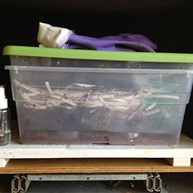 Search online for “worm bins,” purchase one locally from Magic Tree Vermicast, or build one using TWO plastic storage bins.
